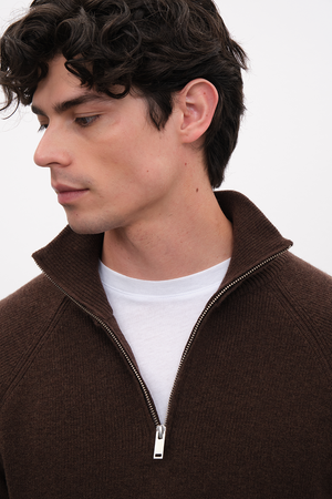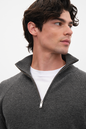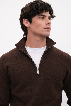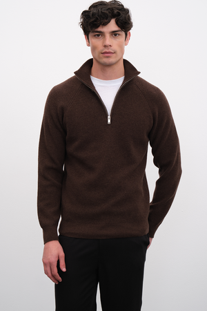 Relaxed-fit, half-zipped unisex sweater with raglan sleeves, made from ecologically sustainable, hypoallergenic, extra-fine Italian merino wool.