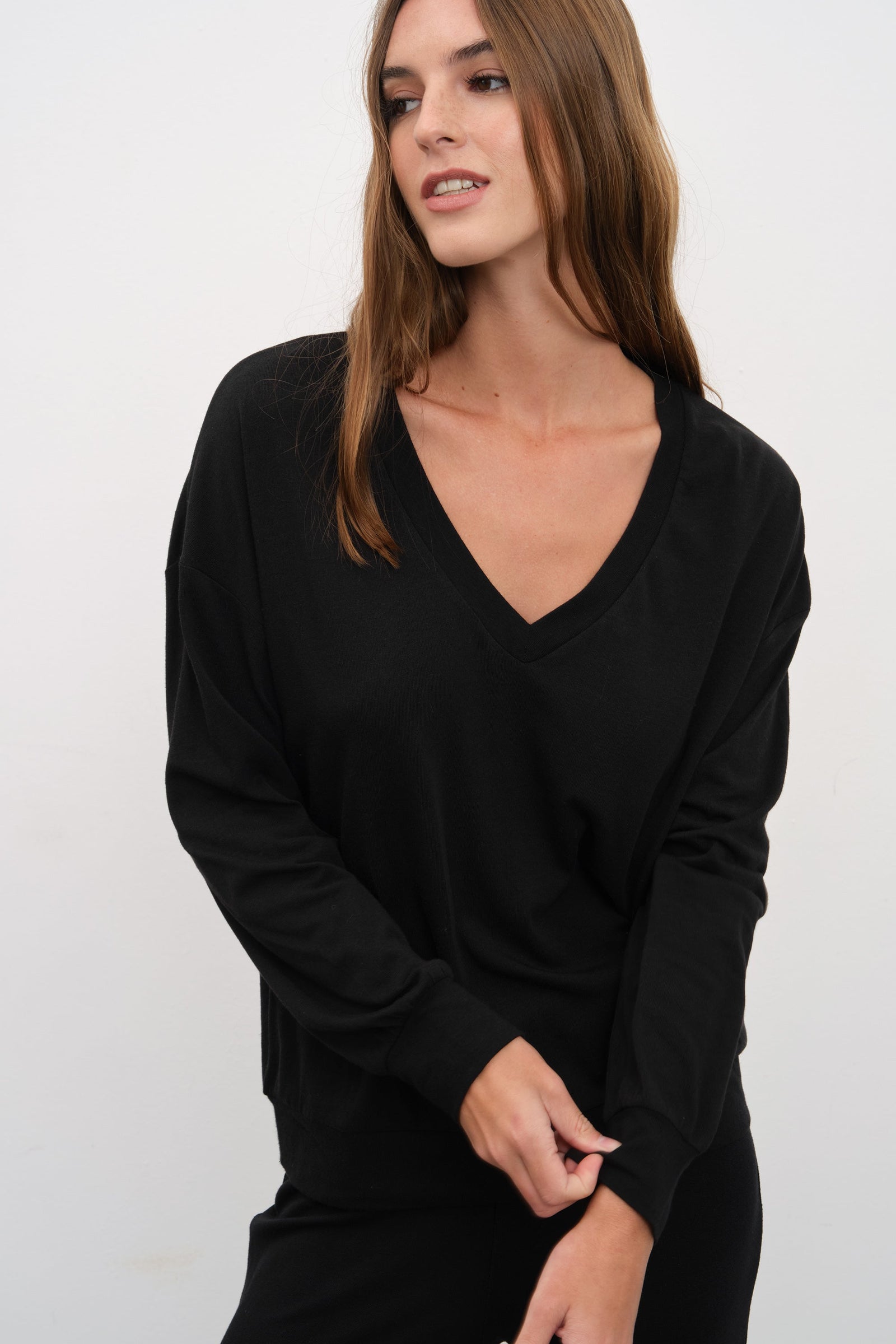 $120.00V Neck Lightweight Sweatshirt in Tri-Blend