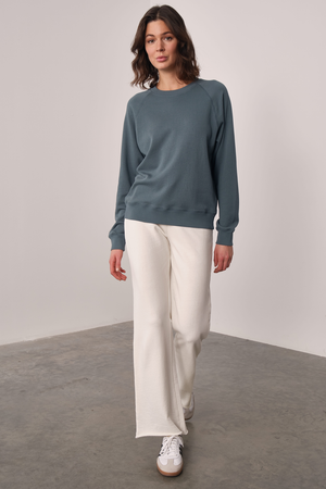 Garment-dyed raglan sleeve sweatshirt, made from our custom-made Aegean cotton french terry fabric.