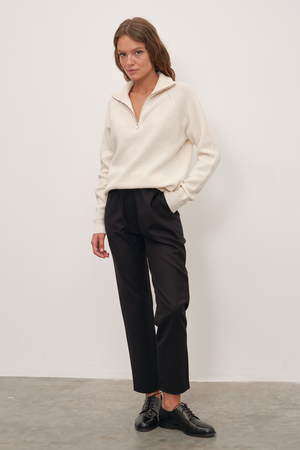 Relaxed-fit, half-zipped unisex sweater with raglan sleeves, made from ecologically sustainable, hypoallergenic, extra-fine Italian merino wool.