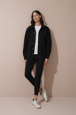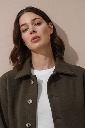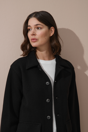 A timeless fall/winter wardrobe staple, wool shirt jacket, made from ecologically sustainable, extra-fine Italian merino wool.