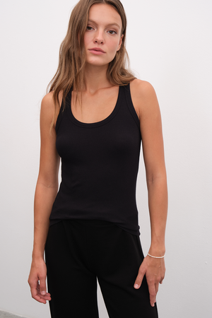 Form-hugging tank top, made from the new custom-made ribbed cotton fabric.