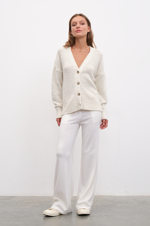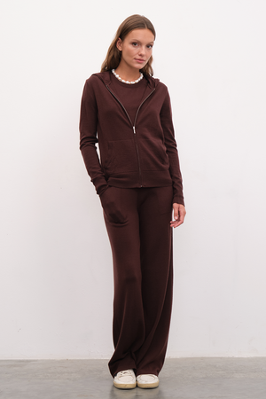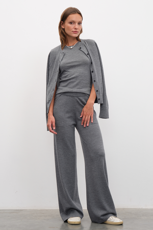 Lightweight, knitted wide-leg pants with side pockets, made from ecologically sustainable, extra-fine Italian merino wool.