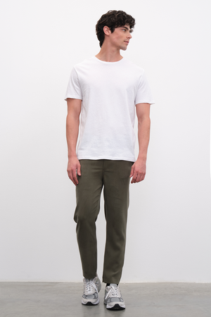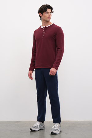 Model is 1.85 cm, and 80 kg, and wearing size 32.
