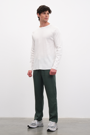 Reinterpreted raglan sleeved t-shirt, perfect for layering or wearing solo, made from our custom-made waffle cotton fabric.