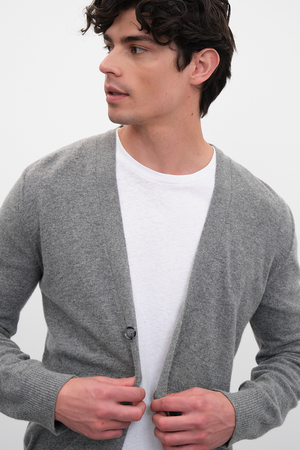 V neck unisex cardigan, made from ecologically sustainable, grade A, Italian cashmere merino wool.