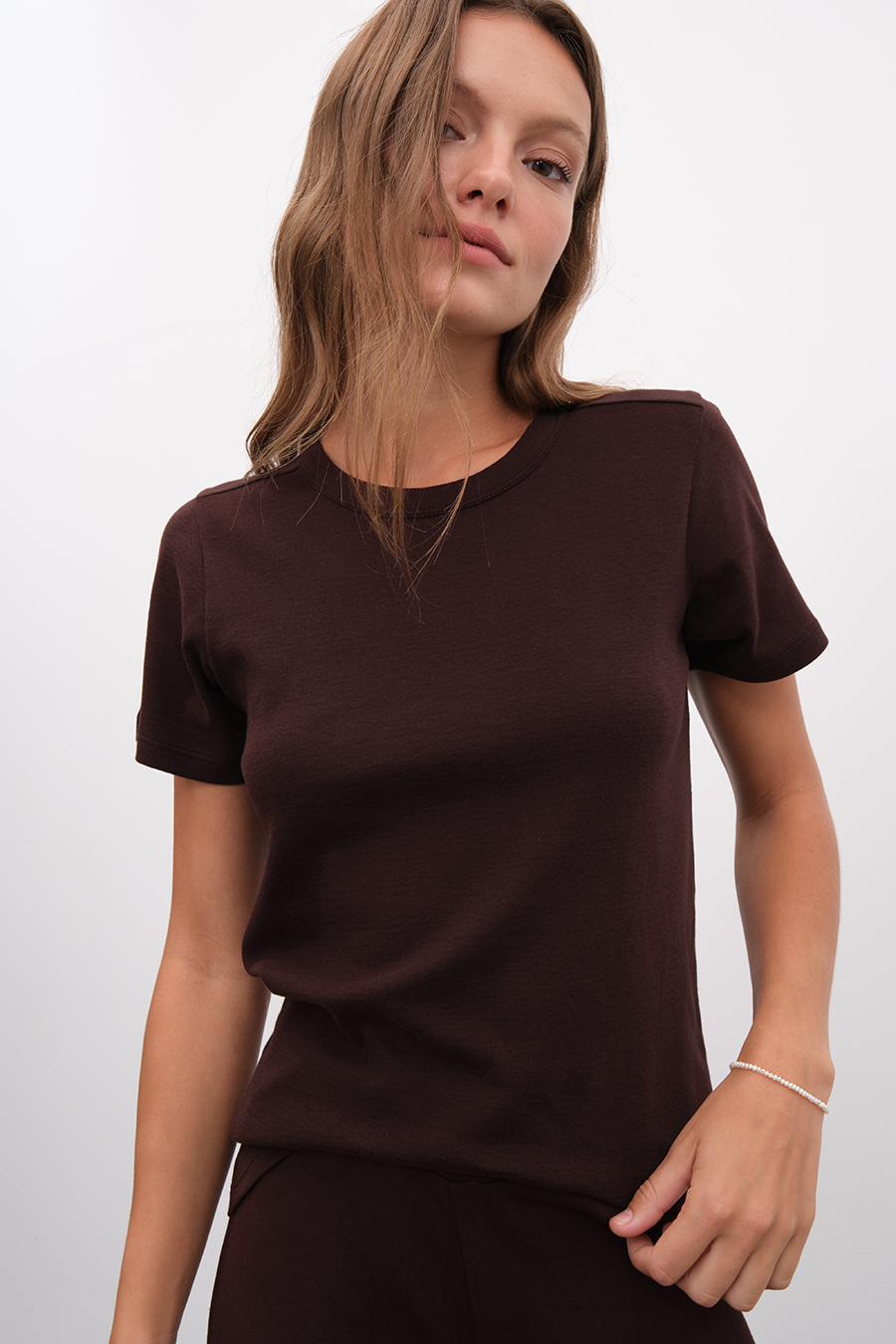 $82.00Capped Shoulder T-shirt in Micro-Ribbed Cotton