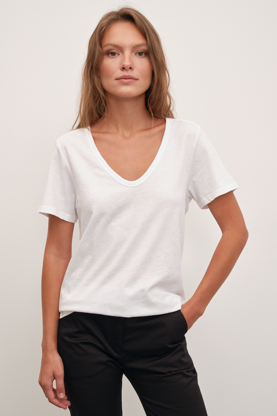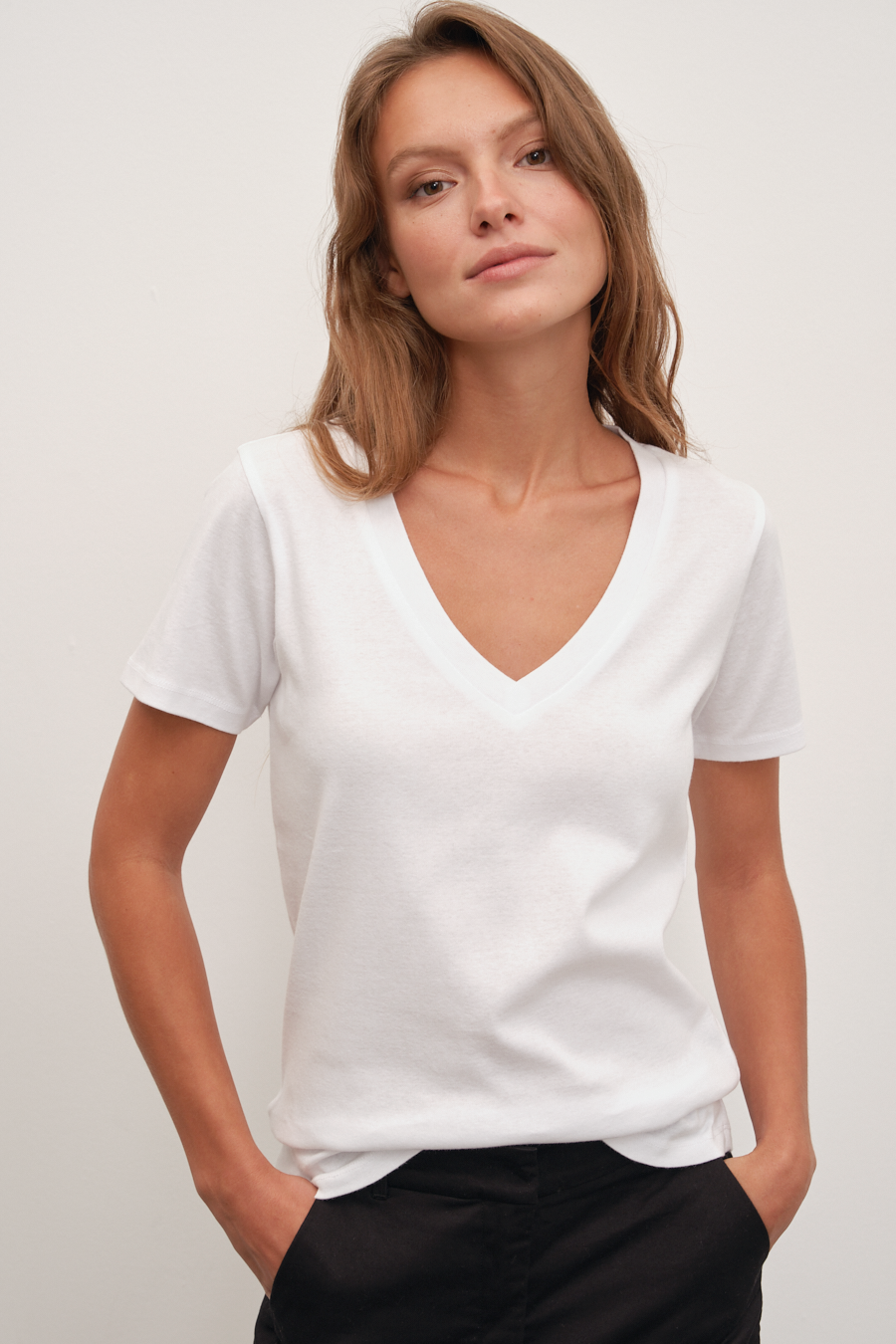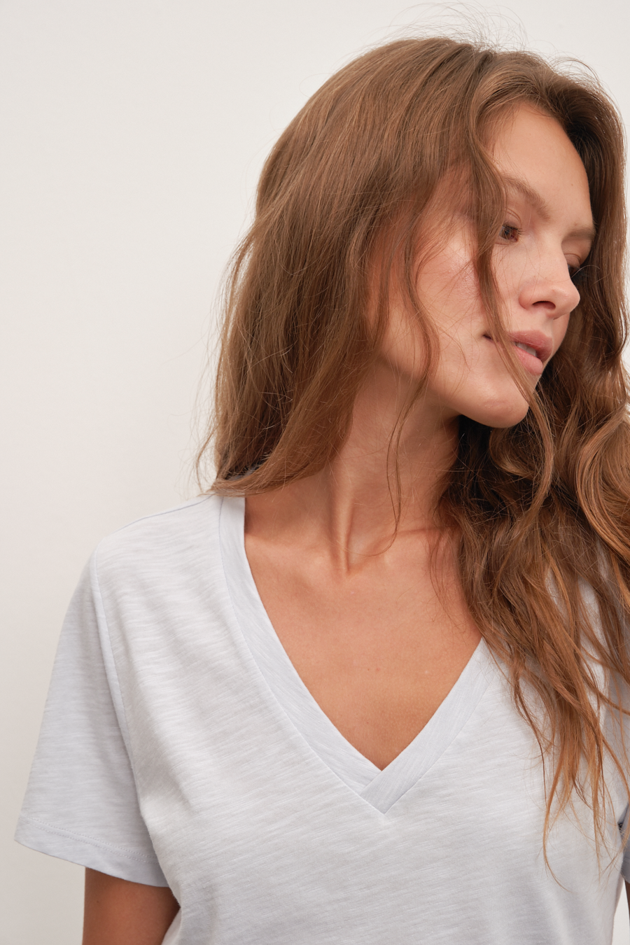 $82.00V Neck Fitted T-shirt in Micro-Ribbed Cotton