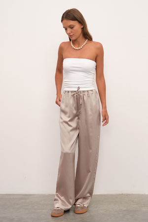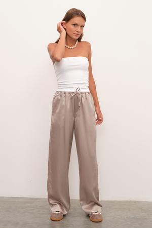 Wide leg pants with side pockets, made from our new premium silk satin fabric.
