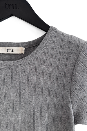 Crew neck t-shirt, made from our custom-made pointelle cotton fabric.