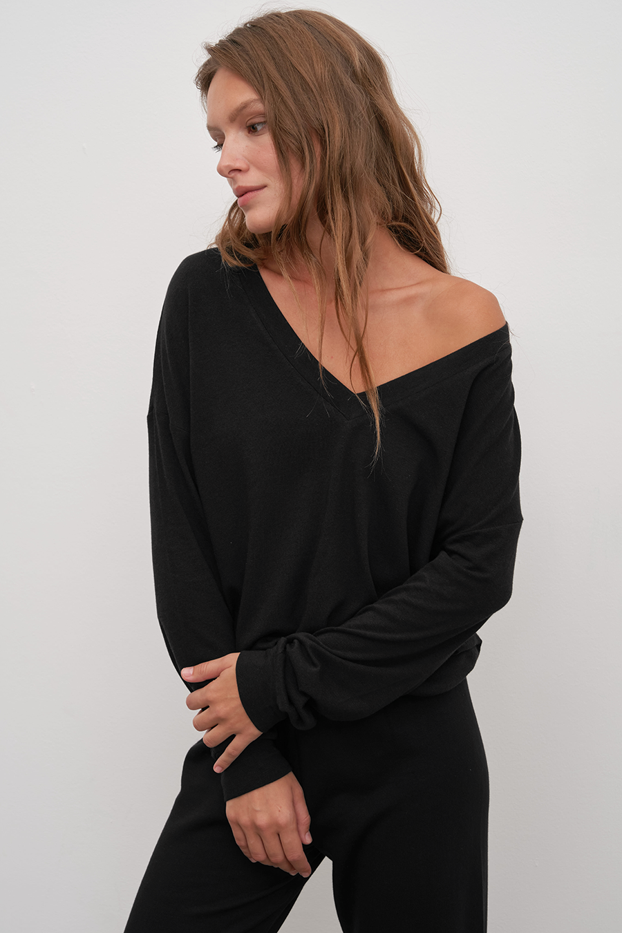 $185.00V Neck Lightweight Sweatshirt in Tri-Blend